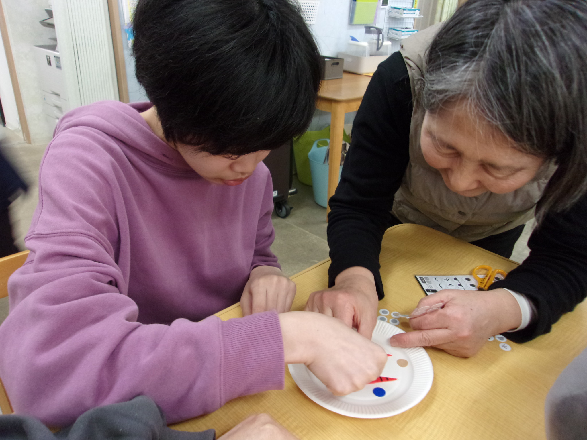 1月27日(火)にボランティアのコーンスープの会が来てくれました! 今回は、2月に向けて節分の制作です。 先生が作ってき…