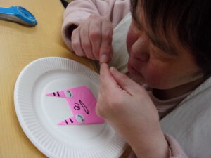 作った制作物はぽーとゆうなぎ内で掲示した後、持ち帰りいただいています。