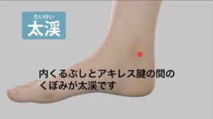 ・太渓(たいけい)内くるぶしとアキレス腱の間のくぼみです。