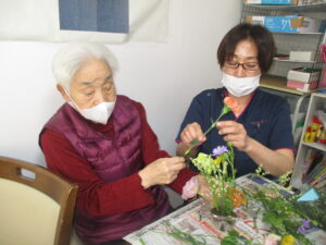 フラワーアレンジメントでは、色とりどりのお花に癒されます。