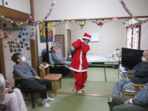 クリスマス会の様子です。サンタさんもやってきました。