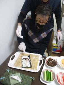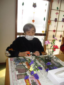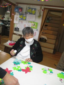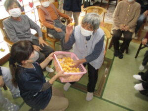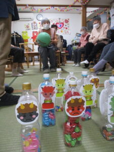 昼食後には、豆まきのゲームや鬼のイラストをつけたボウリングを楽しみました。