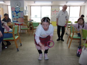 輪投げ 『入った!』と笑顔と拍手で盛り上がりました。